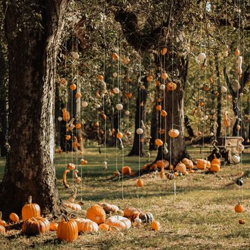 Step into a one-of-a-kind photo spot surrounded by towering trees adorned with strings of pumpkins and unique gourds. It’s the perfect place for selfies, family photos, or capturing memories with friends.